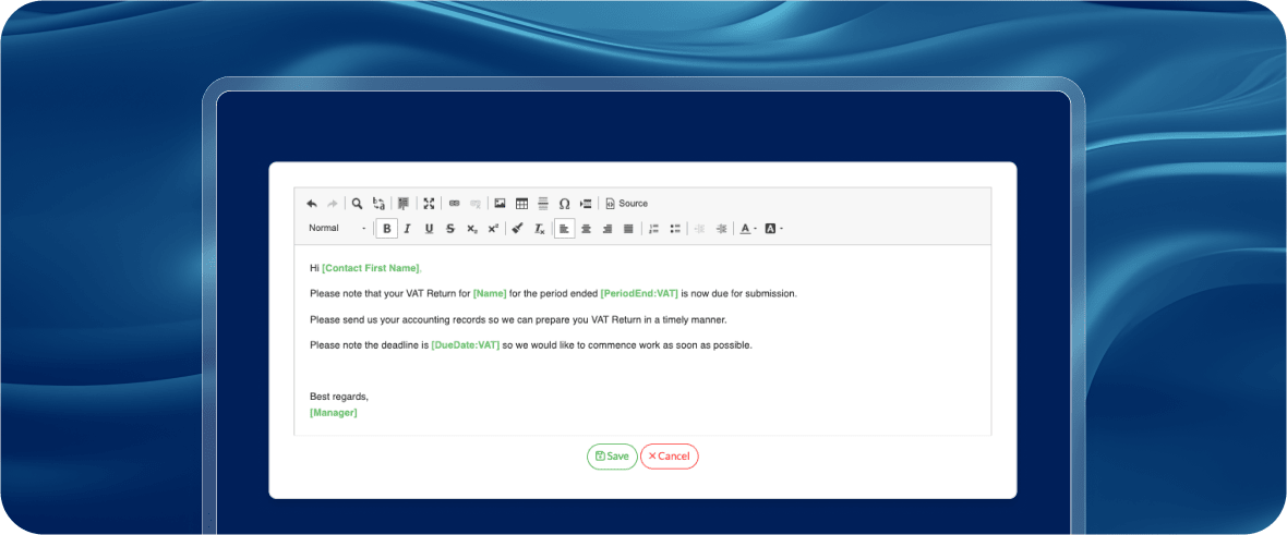 Absolutely! Use placeholders to personalise each email or SMS with details like the client’s name, service, or deadline.