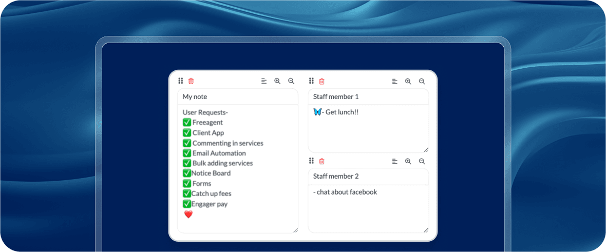 Add notepads to store reminders, ideas, or quick notes directly on your dashboard. Keep useful information handy without switching between tools.